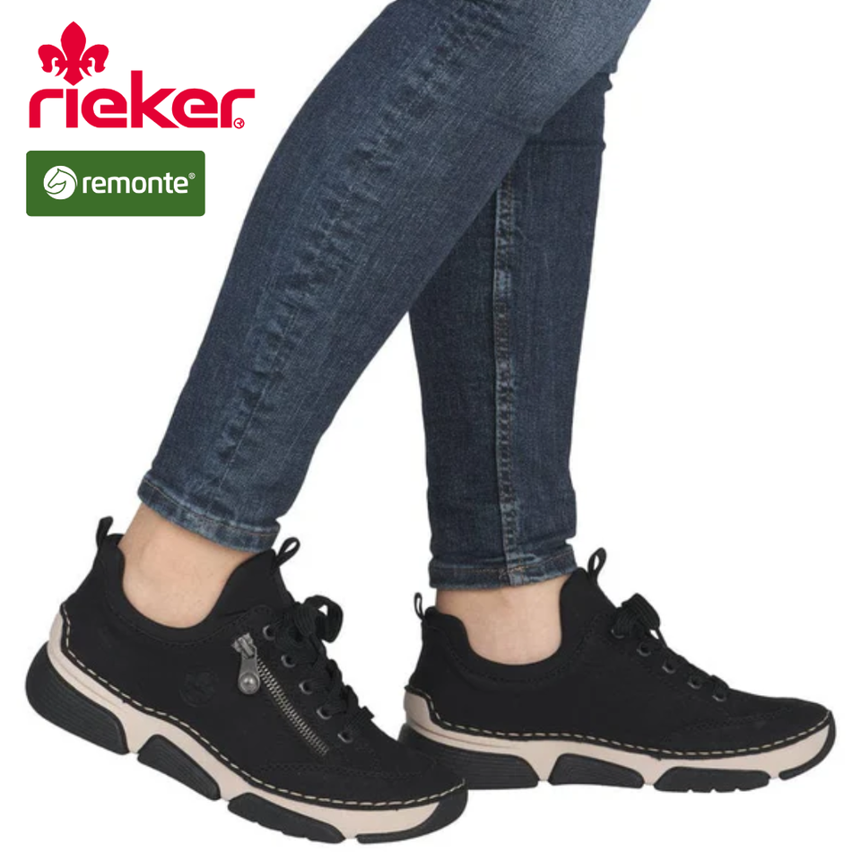 Asymmetrical topline, Overlock stitch detailing on seams, Rear pull tab, Suede heel counter
